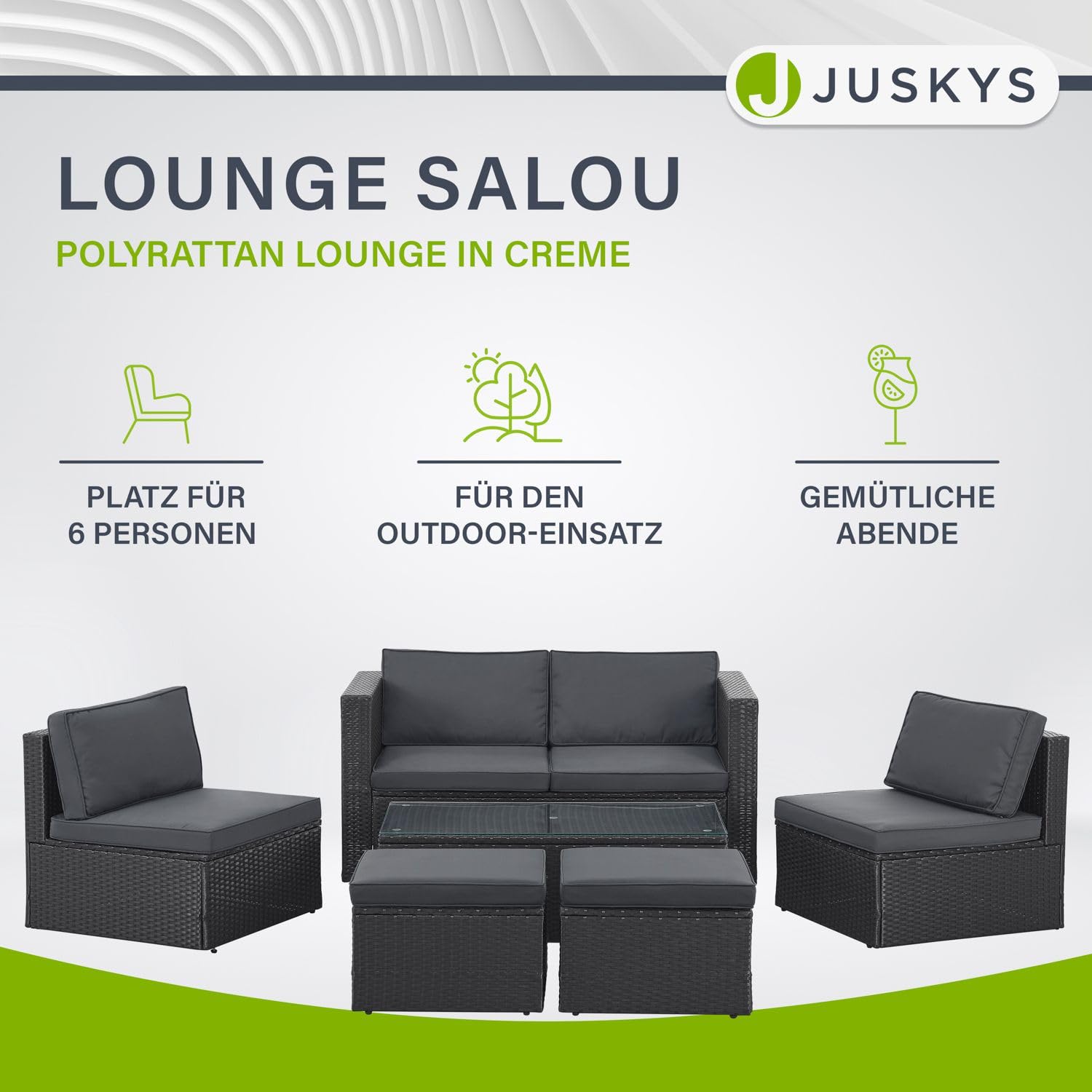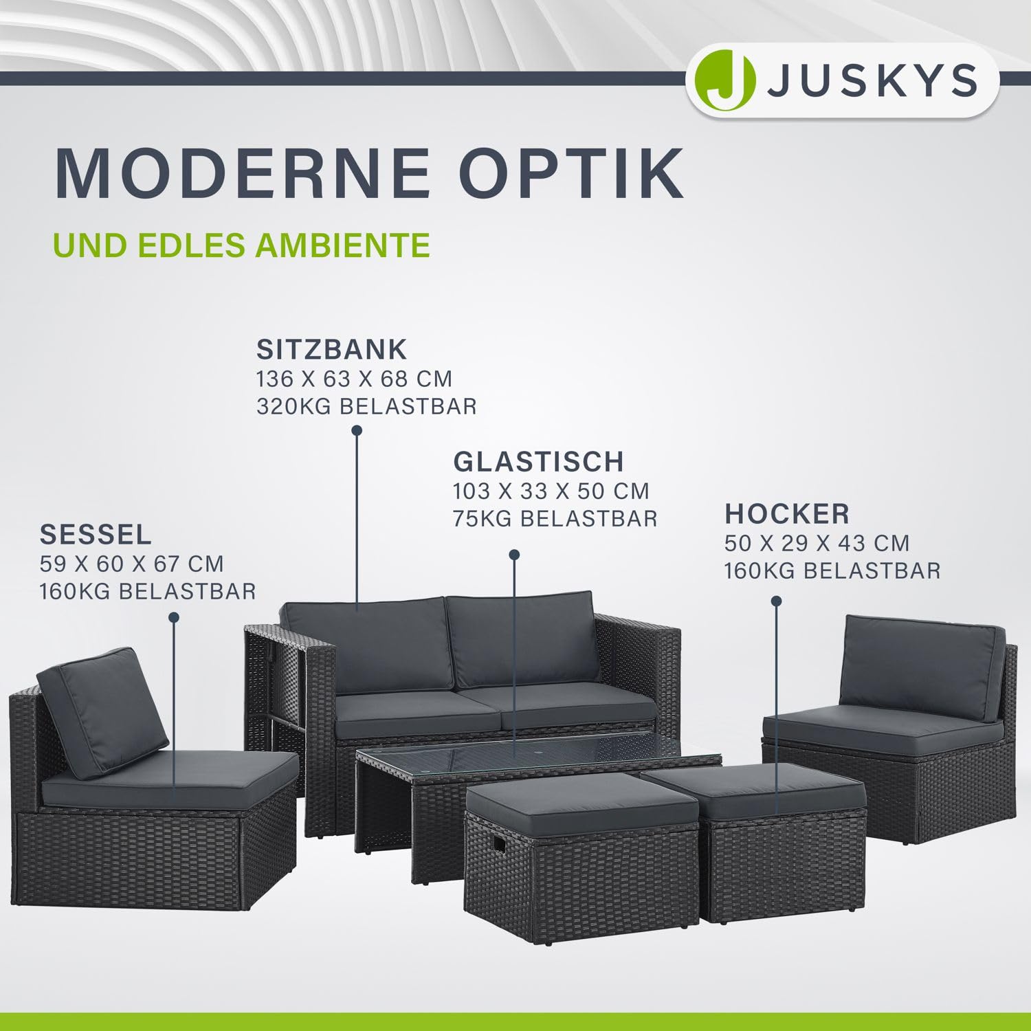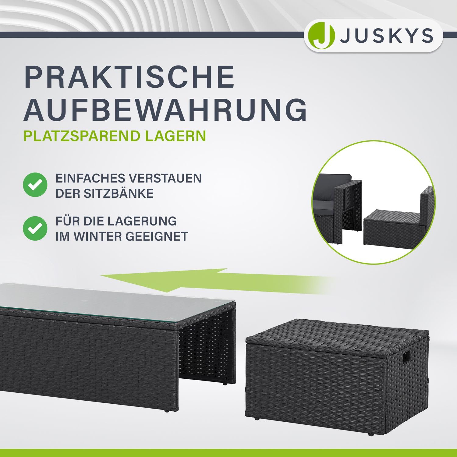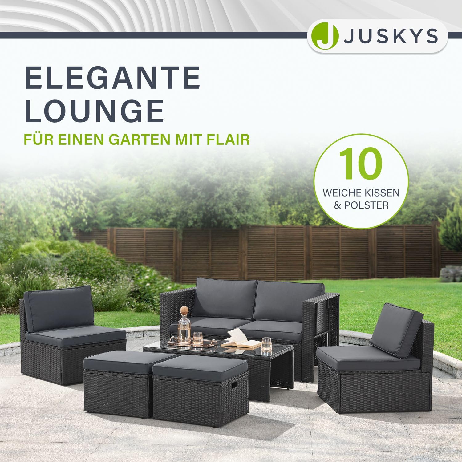 Juskys Polyrattan Gartenmöbel Set Salou - Outdoor Lounge wetterfest 6 Personen - Sitzecke mit Tisch & Kissen für Garten, Balkon, Terrasse - Schwarz