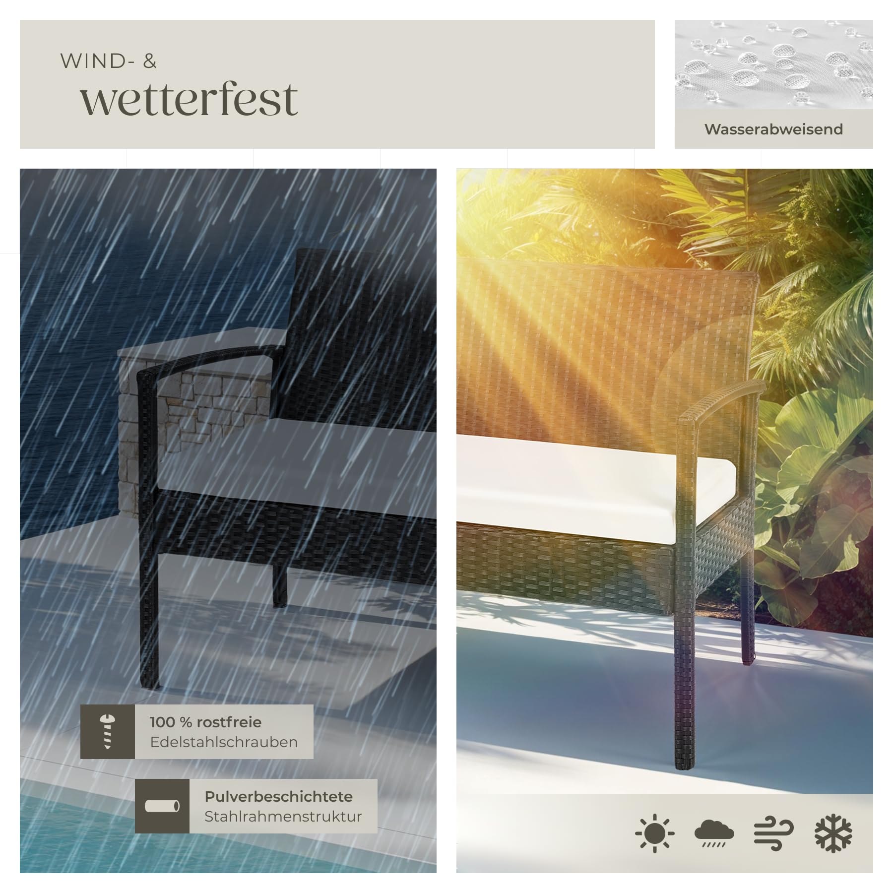 • Wetterfest & pflegeleicht: Gefertigt aus UV-beständigem Polyrattan – langlebig, stabil und einfach zu reinigen.